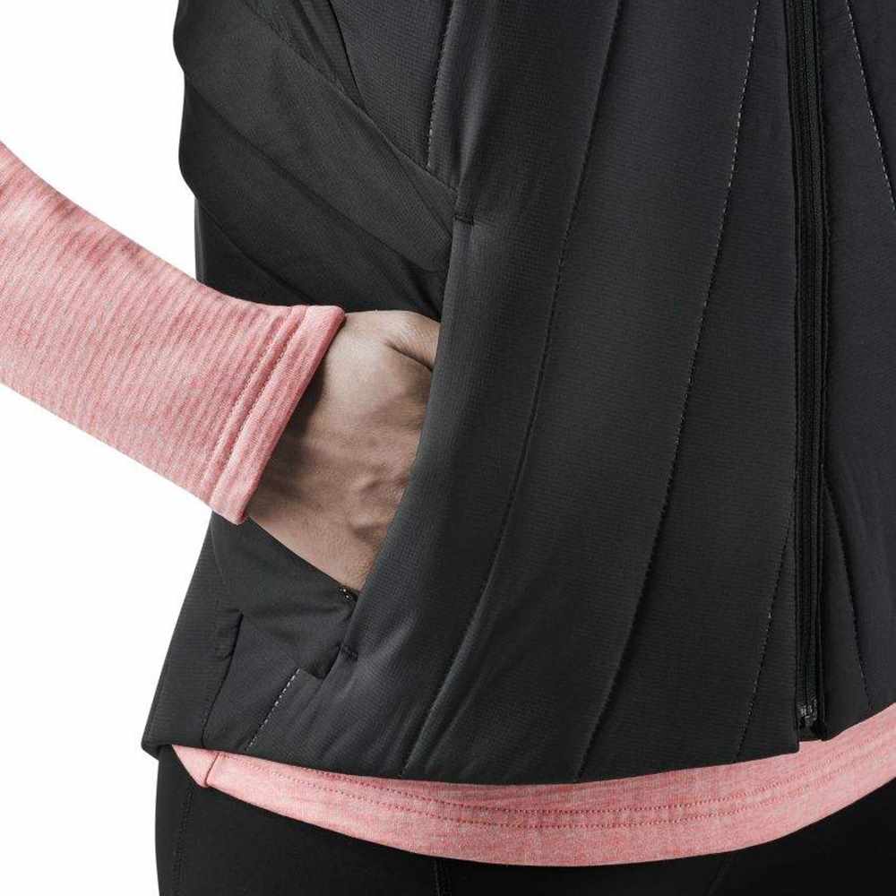 You can break a sweat even on cold winter days when you train hard. This is where the high-tech fabric of this running vest for women takes over with its heat and moisture management: Its breathable design wicks away moisture while air channels and flaps provide pleasant ventilation.